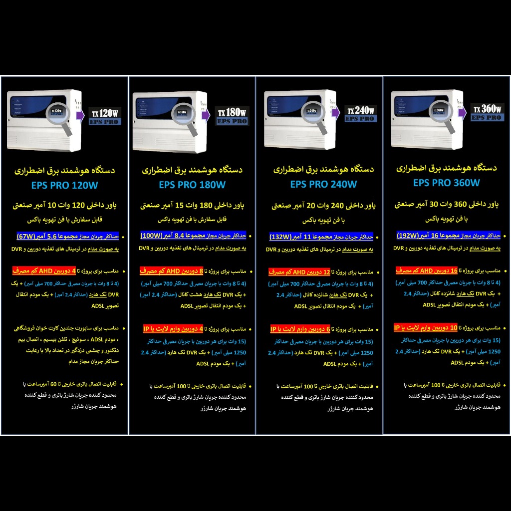 برق اضطراری سری EPS PRO-توان 180W (مختص پروژه های دوربین مداربسته)