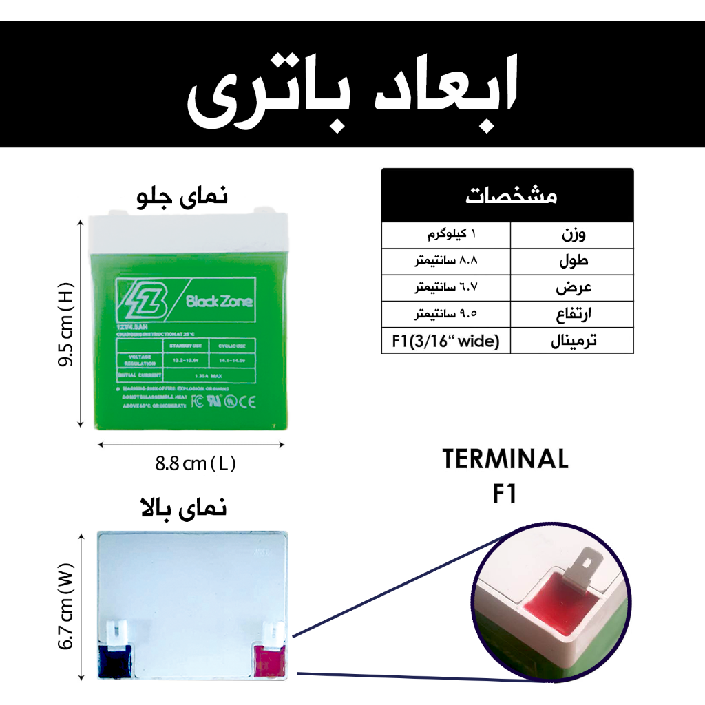 ابعاد باتری